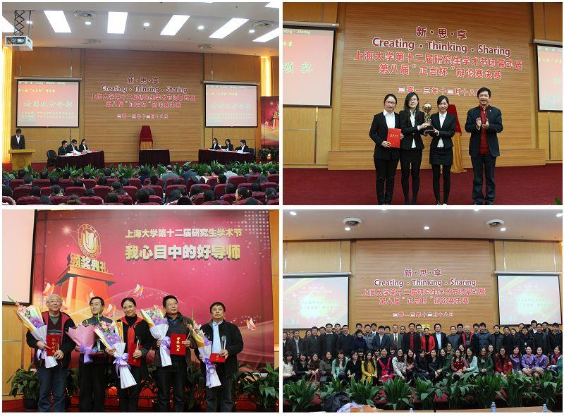 “我心目中的好导师”评选是本届学术节的特色活动。经过学院推荐,共有33名导师入围优秀导师,通过网络投票,评选出十位“最佳导师”,他们分别是:通信学院陆亨利、材料学院汪学广、机自学院阮毅、微电子中心张金艺、计算机学院刘宗田、音乐学院李建林、环化学院吴明红、经济学院尹应凯、影视学院陶建杰、法学院李俊峰。闭幕式上十位导师一一登台,接受来自研究生的掌声,获奖导师们均表示奖杯和鲜花代表了学生们的肯定和肩上的责任。一首配乐诗朗诵《老师的目光》、一曲《感恩的心》,则表达了研究生对老师深深的感恩之情。